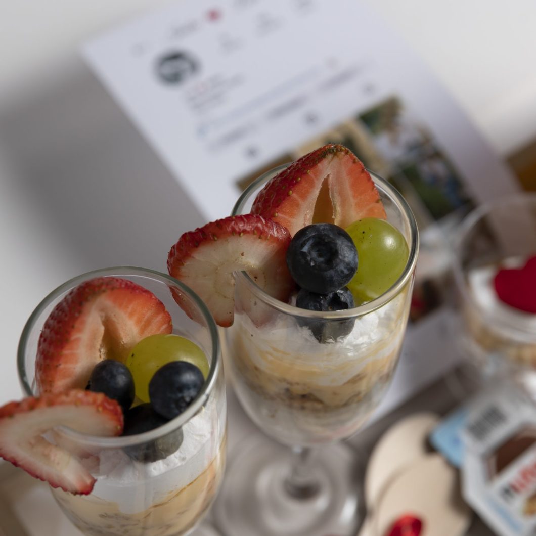 - 2 COPAS DE CRISTAL CON GRANOLA, CHANTILLY Y FRUTAS FRESCAS