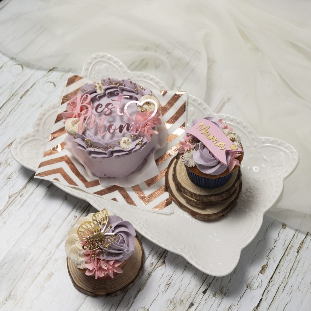 • Torta de dos porciones decorada del Día de la Madre • 2 Cupcakes decorados del Día de la Madre